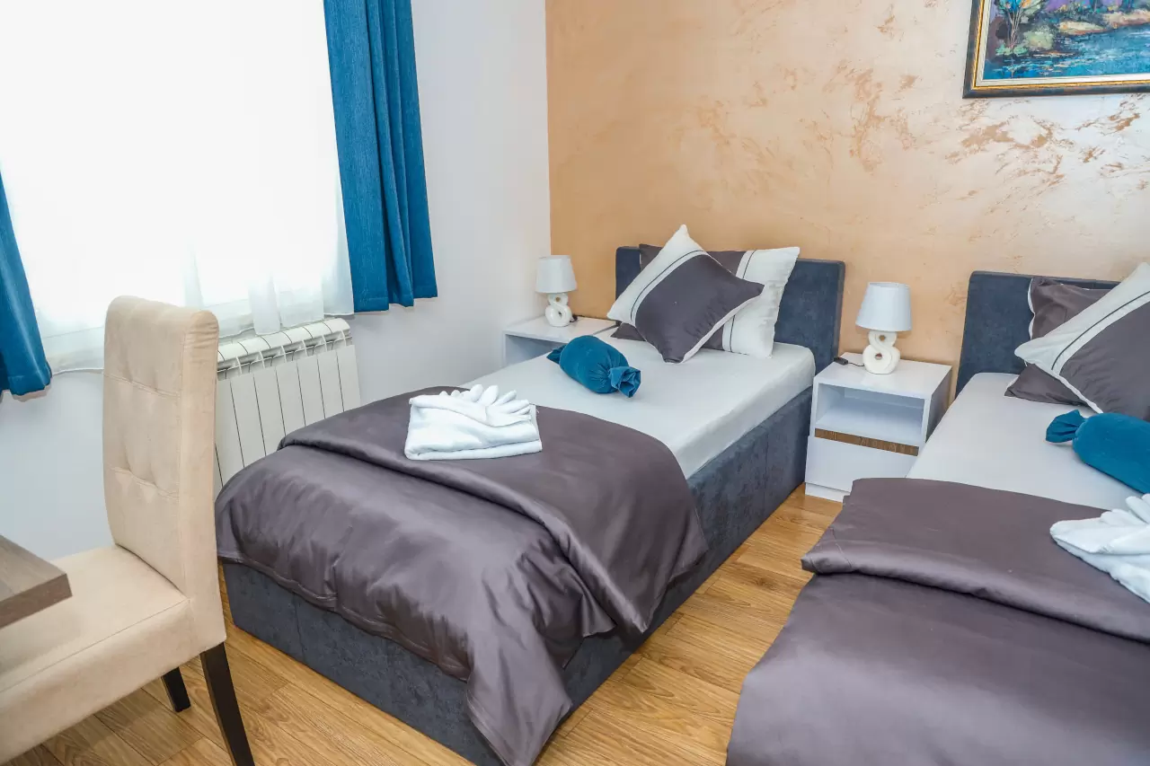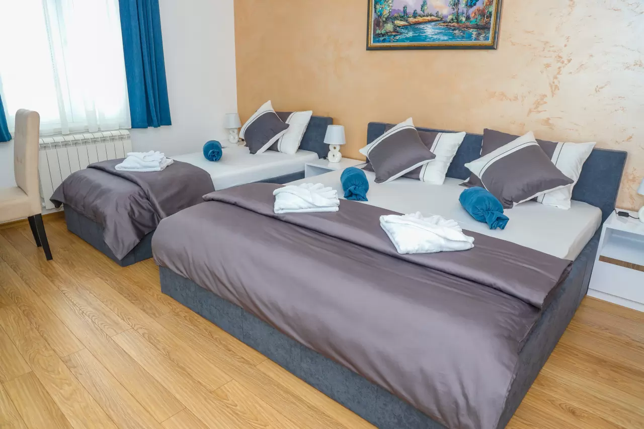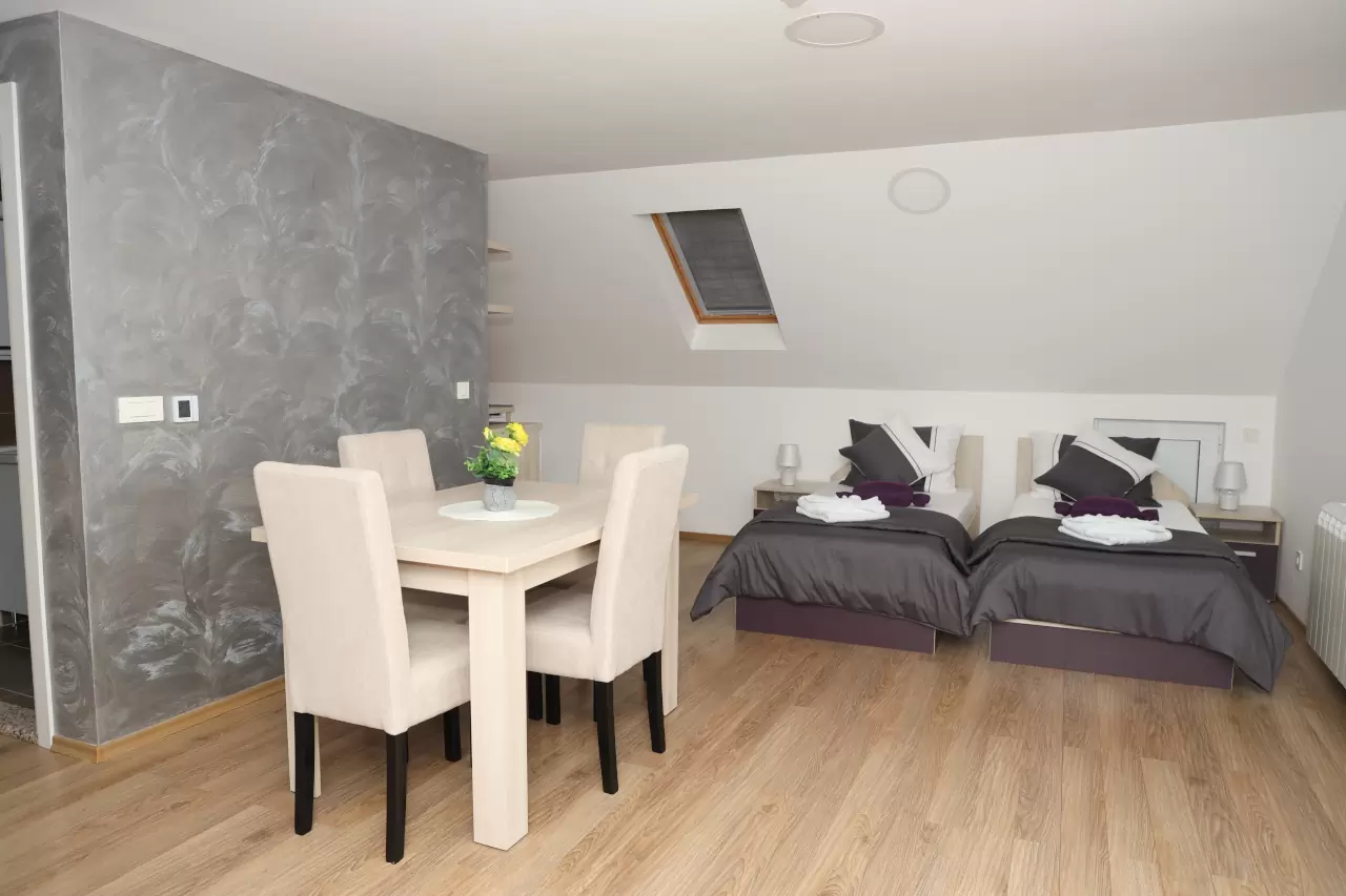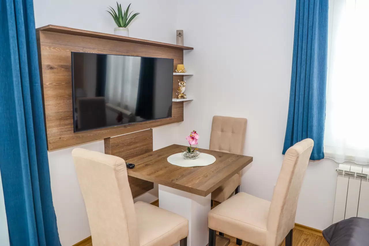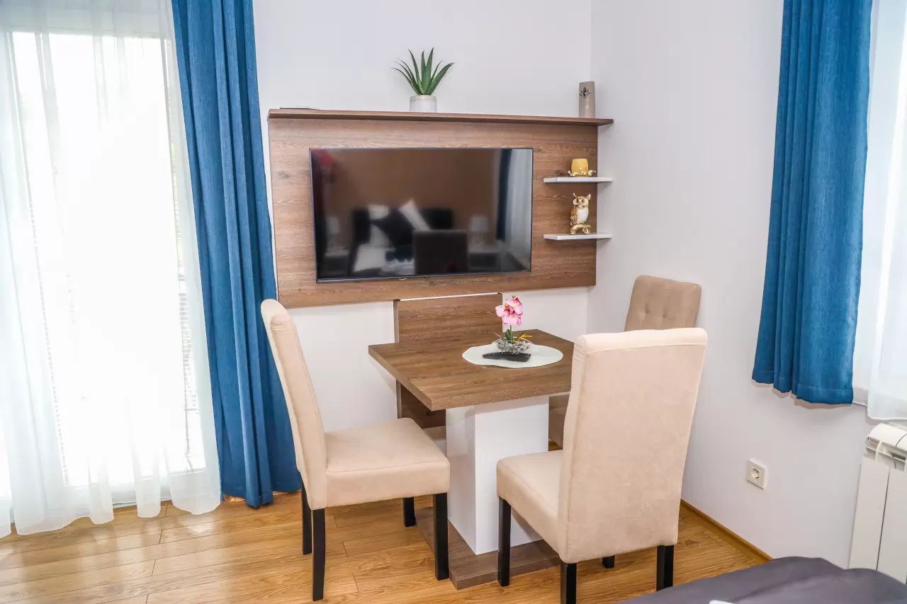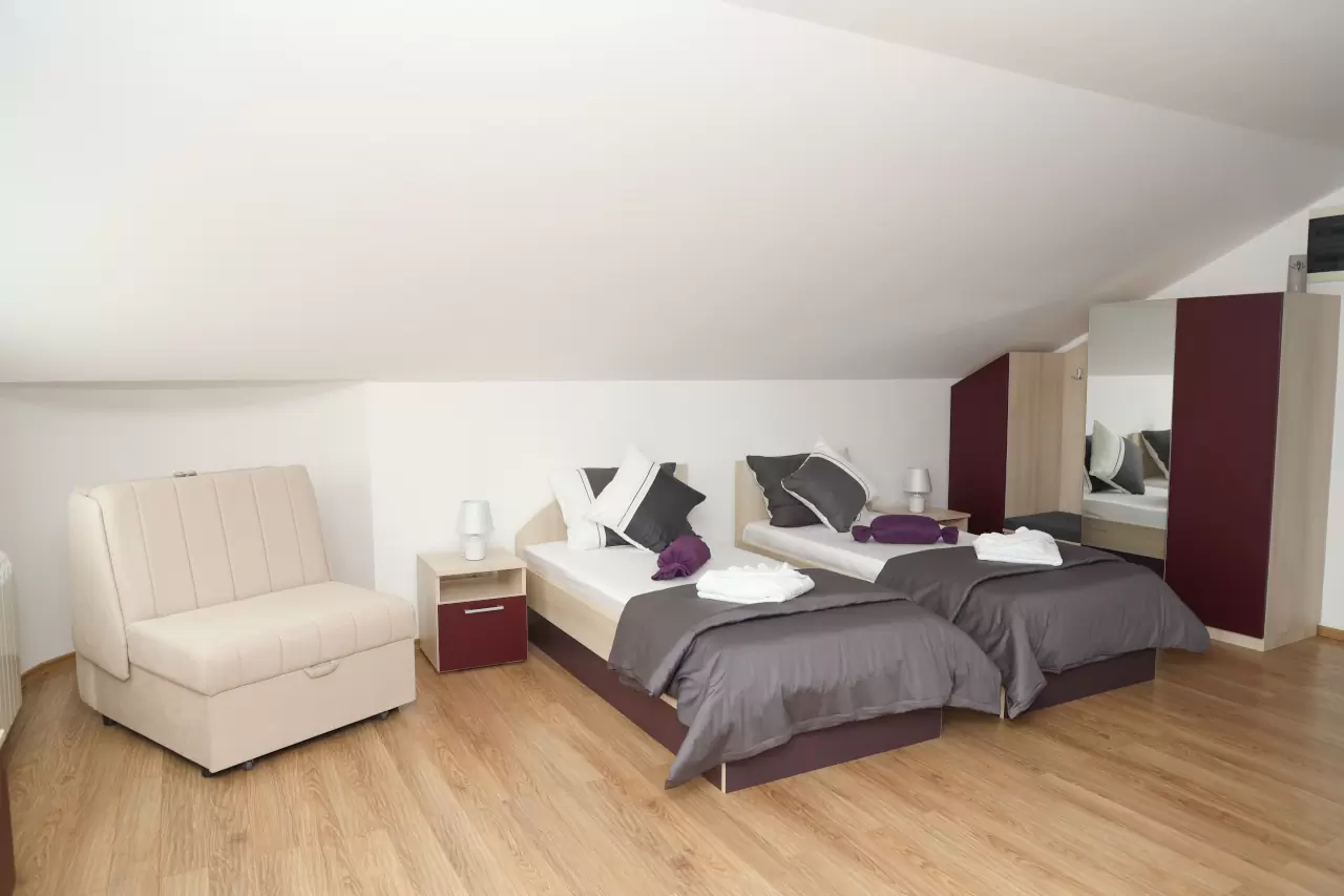 Apartmani mogu primiti od 3 do 5 osoba, što ih čini idealnim za parove, porodice ili manje grupe prijatelja. Svi naši apartmani su klimatizovani i dizajnirani tako da pruže maksimalnu udobnost i prijatnu atmosferu.