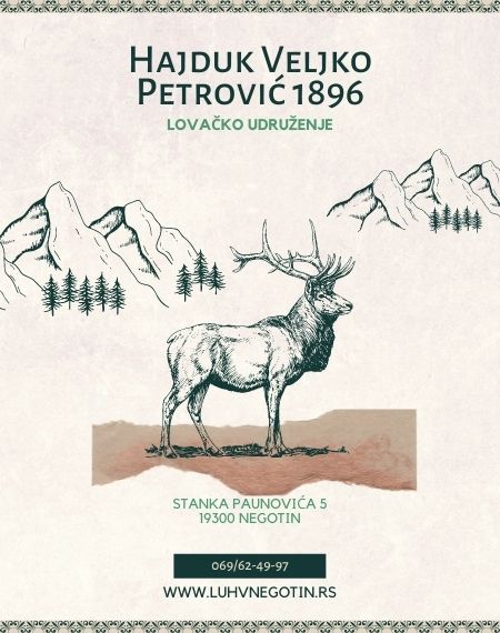 LOVAČKO UDRUŽENJE „HAJDUK VELJKO-PETROVIĆ 1896. – NEGOTIN“ IZ NEGOTINA, OSNOVANO JE 31.03.1896. GODINE I JEDNO JE OD NAJSTARIJIH LOVAČKIH UDRUŽENJA U SRBIJI. UDRUŽENJE IMA PREKO 800 ČLANOVA, I ZA SVOJ USPEŠAN RAD I GAZDOVANJE DOBILO JE NAJVIŠA PRIZNANJA ZA OVU OBLAST DELOVANJA, OD KOJIH POSEBNO MESTO ZAUZIMAJU SPOMEN PLAKETA I ZLATNI ORDEN ZA LOVAČKE ZASLUGE LOVAČKOG SAVEZA SRBIJE.