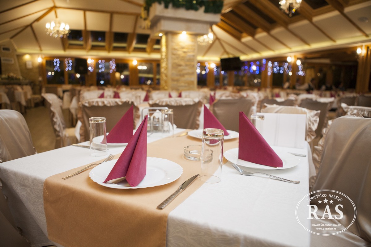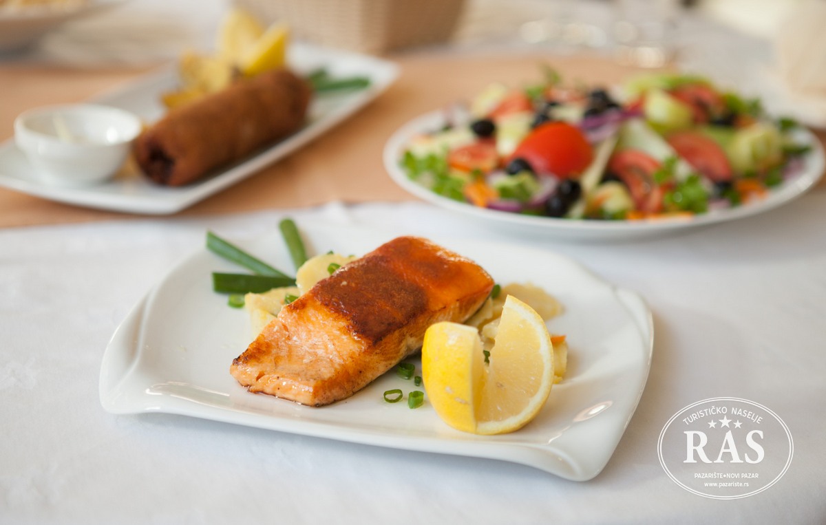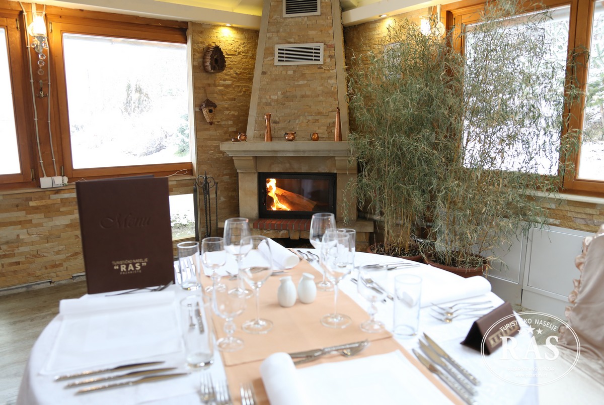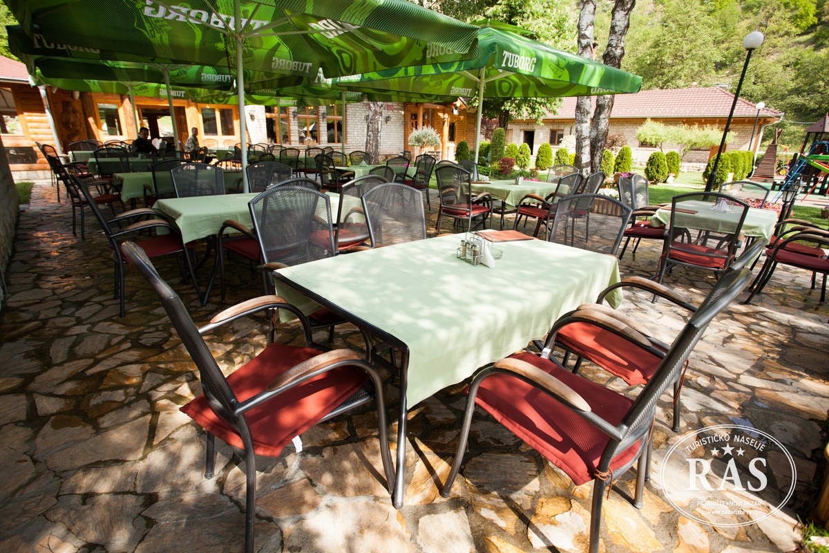 Turističko naselje “Ras“ poseduje centralnu zgradu sa restoranom od 60 mesta kao i veliku salu sa 170 mesta, letnju baštu sa 120 mesta kao i kafe bar sa 120 mesta. U našem resotranu možete uživati u specijalitetima domaće i internacionalne kuhinje, kao i u velikom izboru pića. Činimo sve da otkrijete novu dimenziju uživanja u hrani i piću, čime stvaramo osećaj posebnosti za svakog gosta, kombinujući šarm prošlosti i dočaravajući sadašnjost.